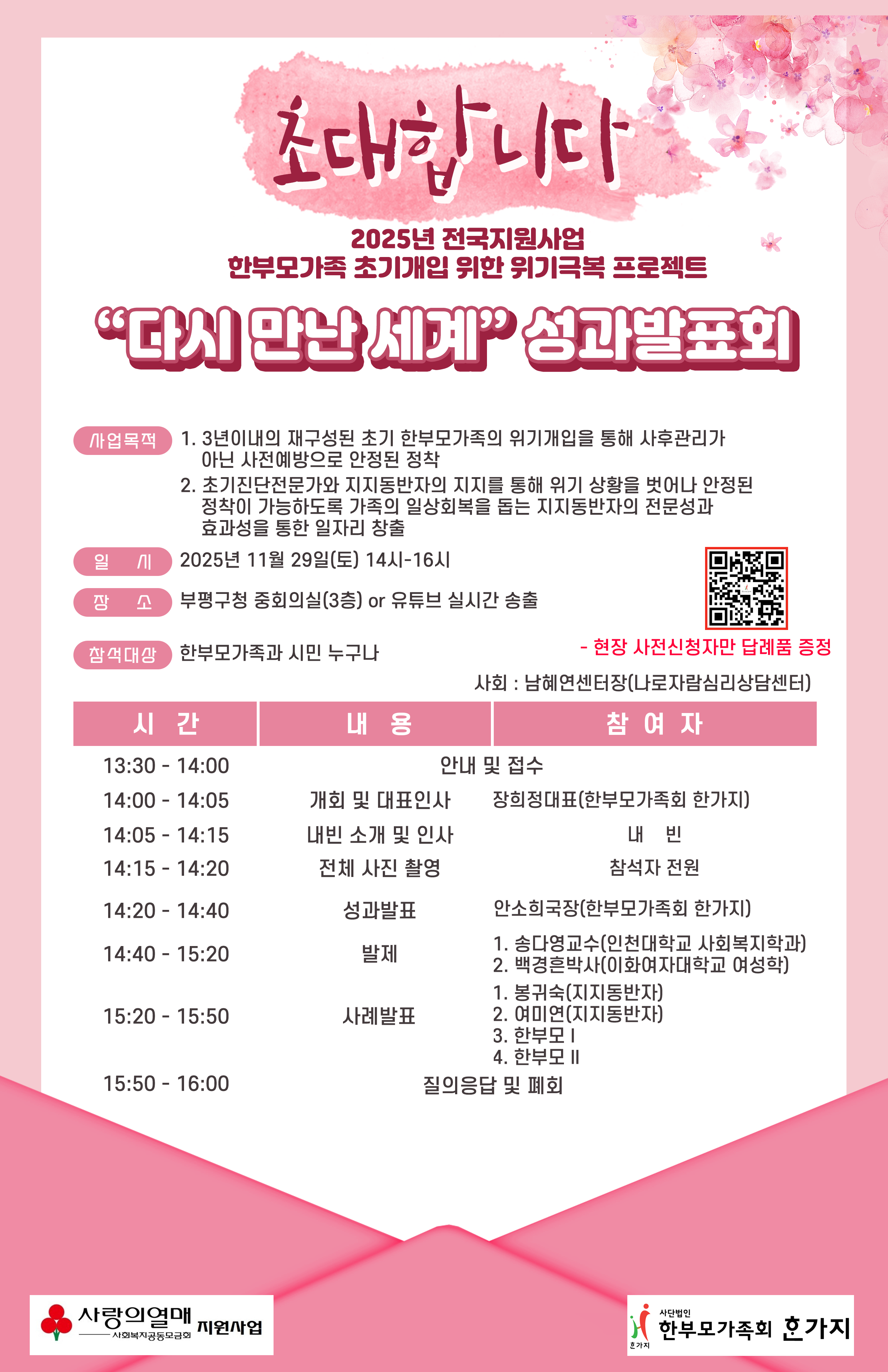 2025년 전국지원사업 '다시 만난 세계' 성과발표회 참석해주세요.