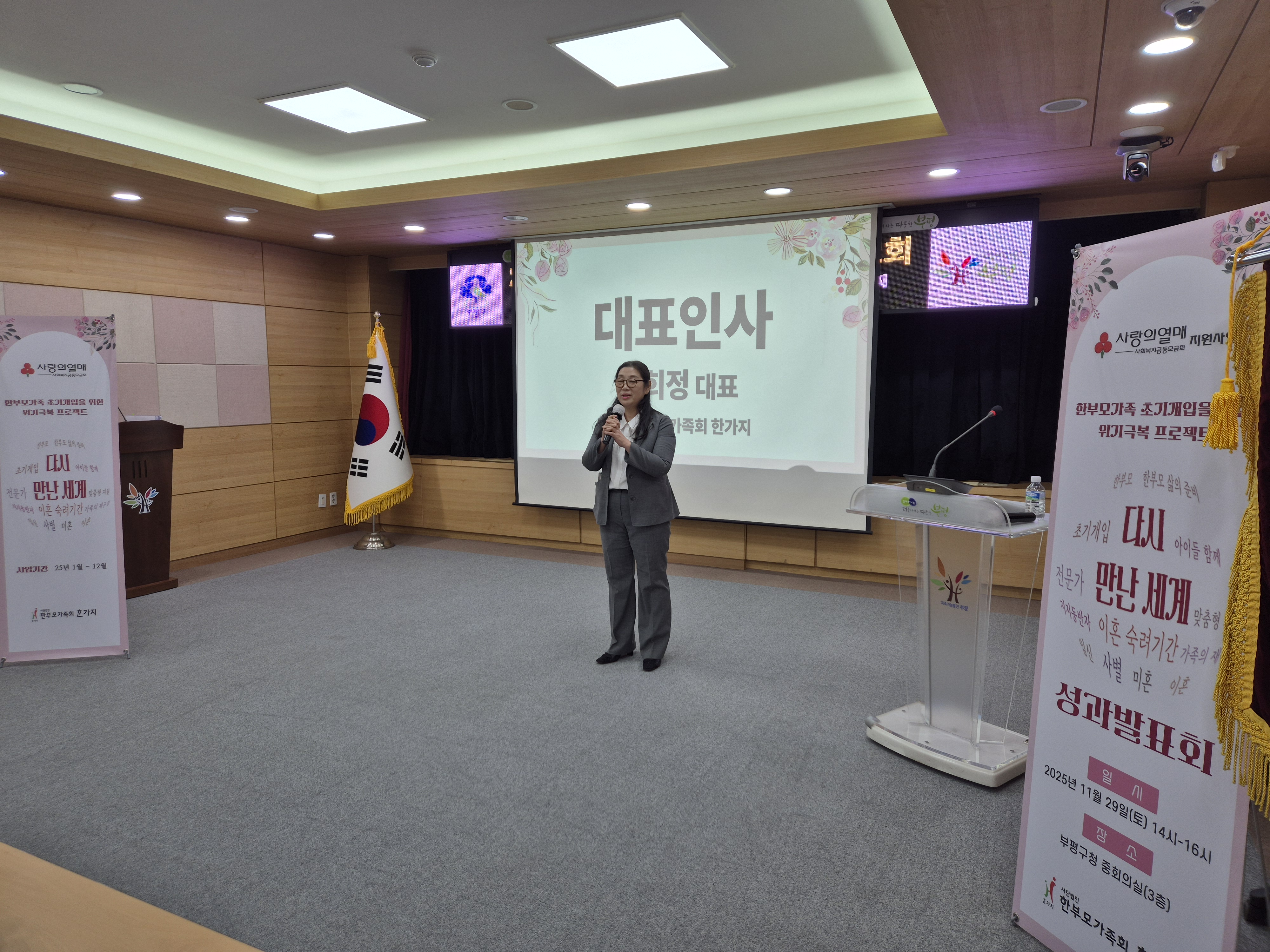 한가지는 초기한부모의 초기개입의 중요성을 알리고, 많은 지역과 기관의 연계, 전문가 분들의 연계 등 한부모가족의 삶을 응원하고, 지원하고자 합니다.